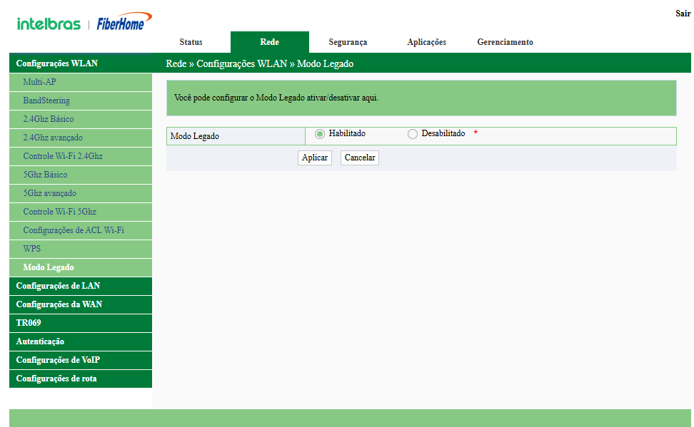 » Rádio Habilitado/Desabilitado: mostra se o rádio está habilitado ou desabilitado.